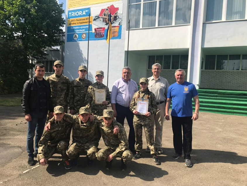 Всеукраїнська військово-патріотичної гра «Сокіл» («Джура»). Директор Львівського ВПУ дизайну та будівництва Адашинський В. Й. Виховники рою: керівник фізичного виховання Іваницький Б. В., викладач захисту Вітчизни Олійник С. Н., викладач фізичної культури Бас А. Б. Учні рою «Нескорені» Львівського ВПУ дизайну та будівництва.
